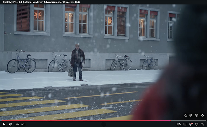 Das Bananenhaus kommt im Werbefilm „My Post 24-Automat wird zum Adventskalender“ vor. An der Ausstellungsstrasse 100 in Zürich fährt im Film auch ein Postauto. Man schaut so zufällig TV und plötzlich erkennt man bekannte „Filmkulisse“. Das denkmalgeschützte Bananenhaus aus dem Jahr 1926 hatten wir 2019-22 für den Kanton Zürich, die Schule für Gestaltung, teilinstandgesetzt.