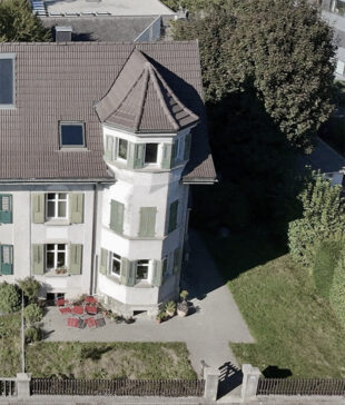 Das Haus mit flachem Toskana-Dach bekam ein stadtliches Mansard-Walmdach in der Quartiererhaltungszone „Wehrli“. Alle Dachlasten werden stützenfrei auf die darunterliegenden Aussenwände abgeleitet…